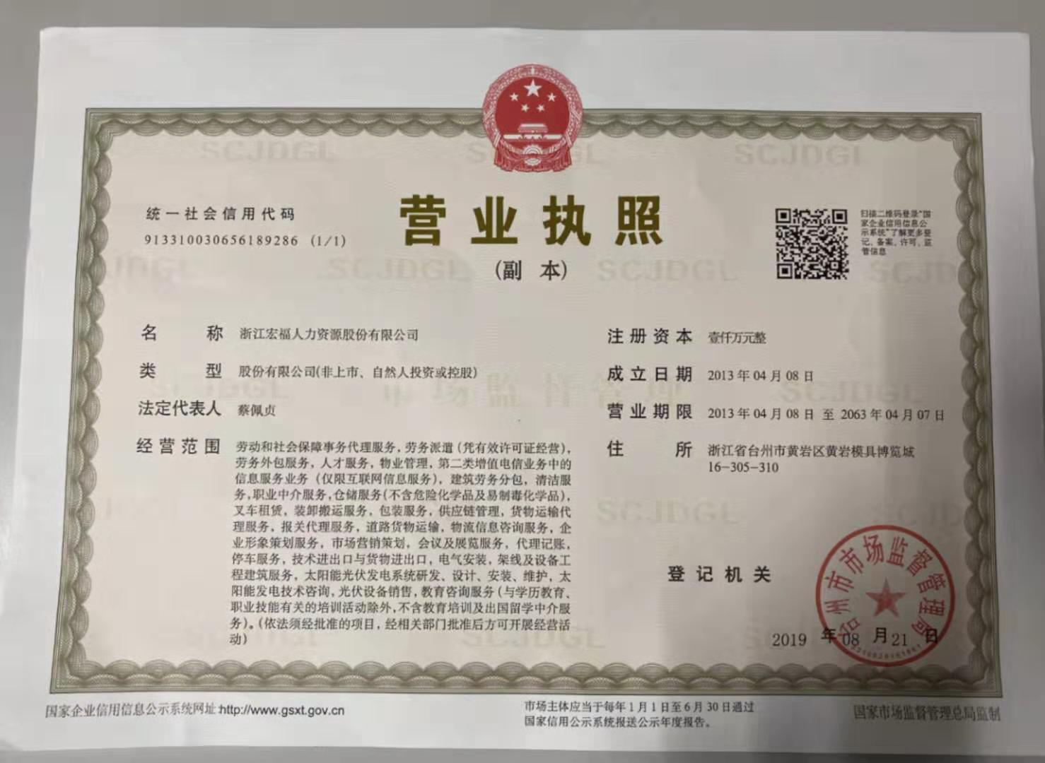 2020-10-09 09:44臺州新名匠勞務有限公司招聘公告